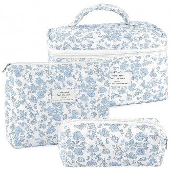 Quilted Cotton Large Travel Cosmetic Bag – Floral Portable Makeup Organizer
