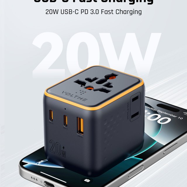 • Universal Compatibility: Works in 200+ countries with interchangeable plugs.